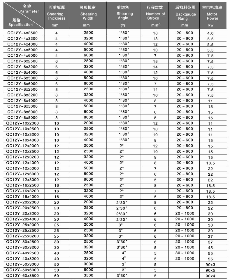 - Угао смицања: 30°~1°30, 30°~1°45, 30°~2°, 30°~2°30, 1°30~3°, 1°30~3°30, 1°30~4 °